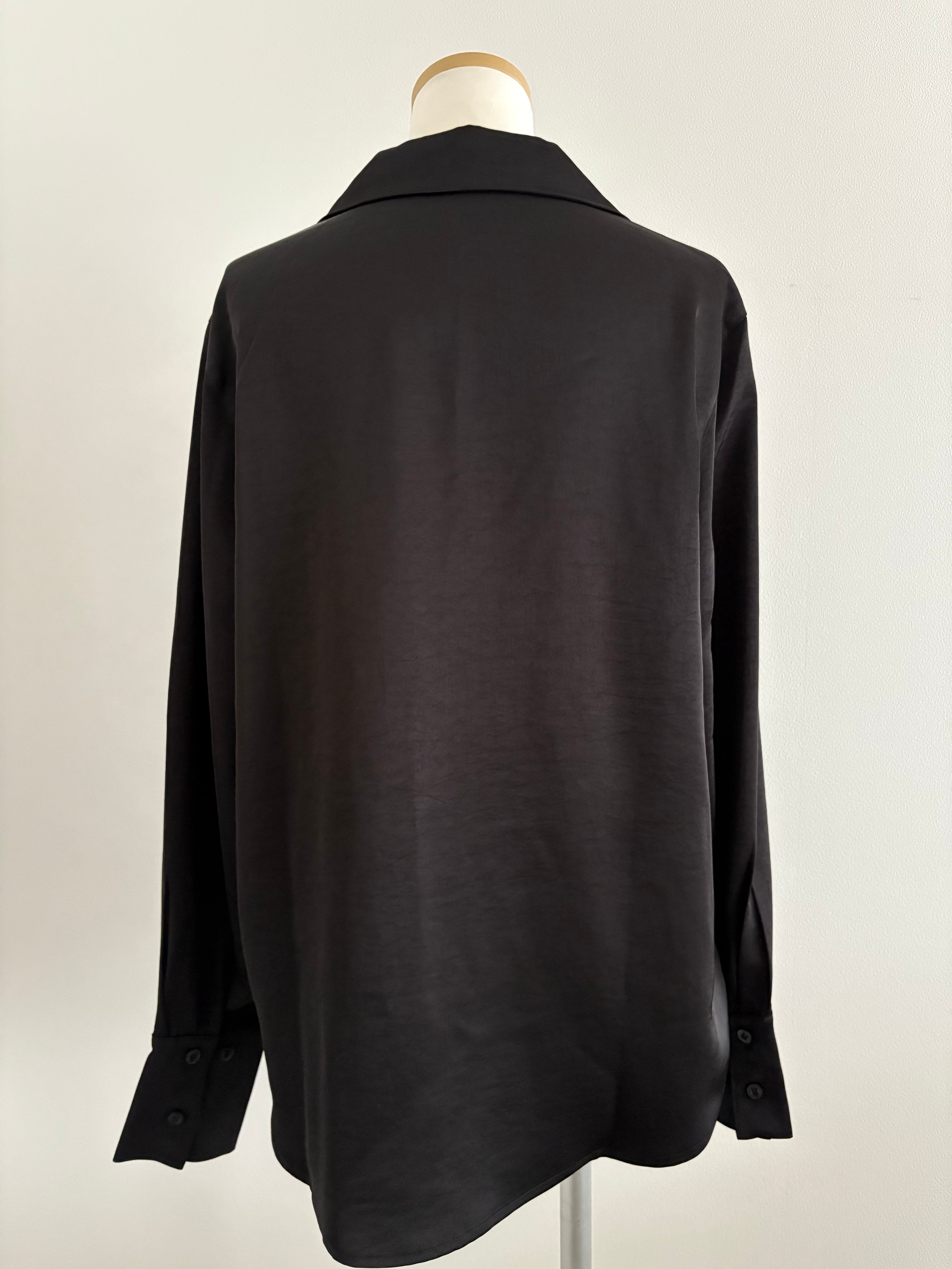 シルクのような肌触りが心地よいサテンシャツ。ポリエステルなのでお手入れも簡単で洗濯機でのお洗濯可能です。女性らしさ感じるシルエットも◎