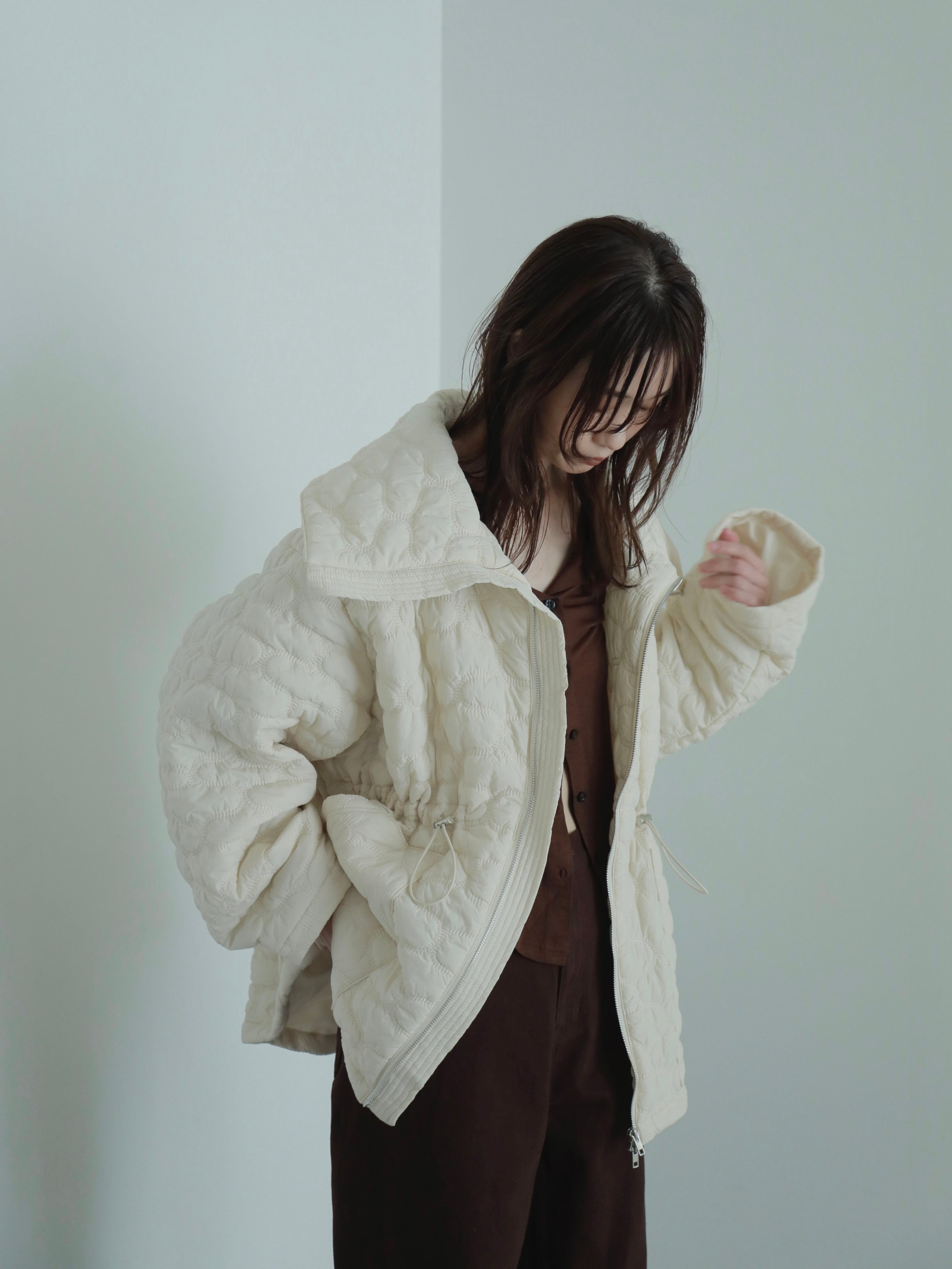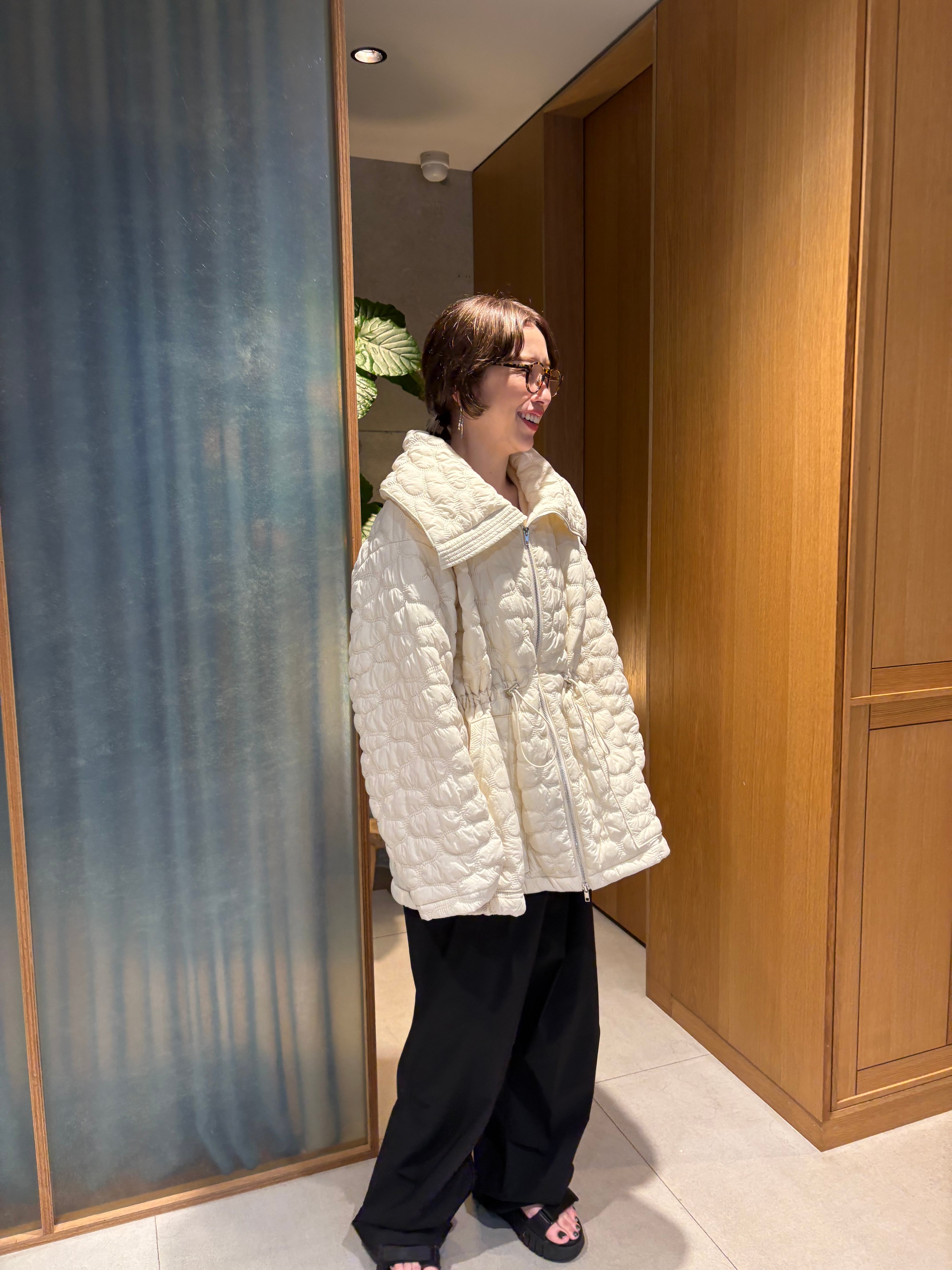 ふんわり空気をふくんだキルティングが軽くて暖かく、 ストレスフリーな着心地。中にも着込めるゆとりがあり、ニットなども着れます。ヒップラインまですっぽり隠れるのもポイント。ウエストはアジャスターが付いているので絞って着るとスタイルアップ効果あり。