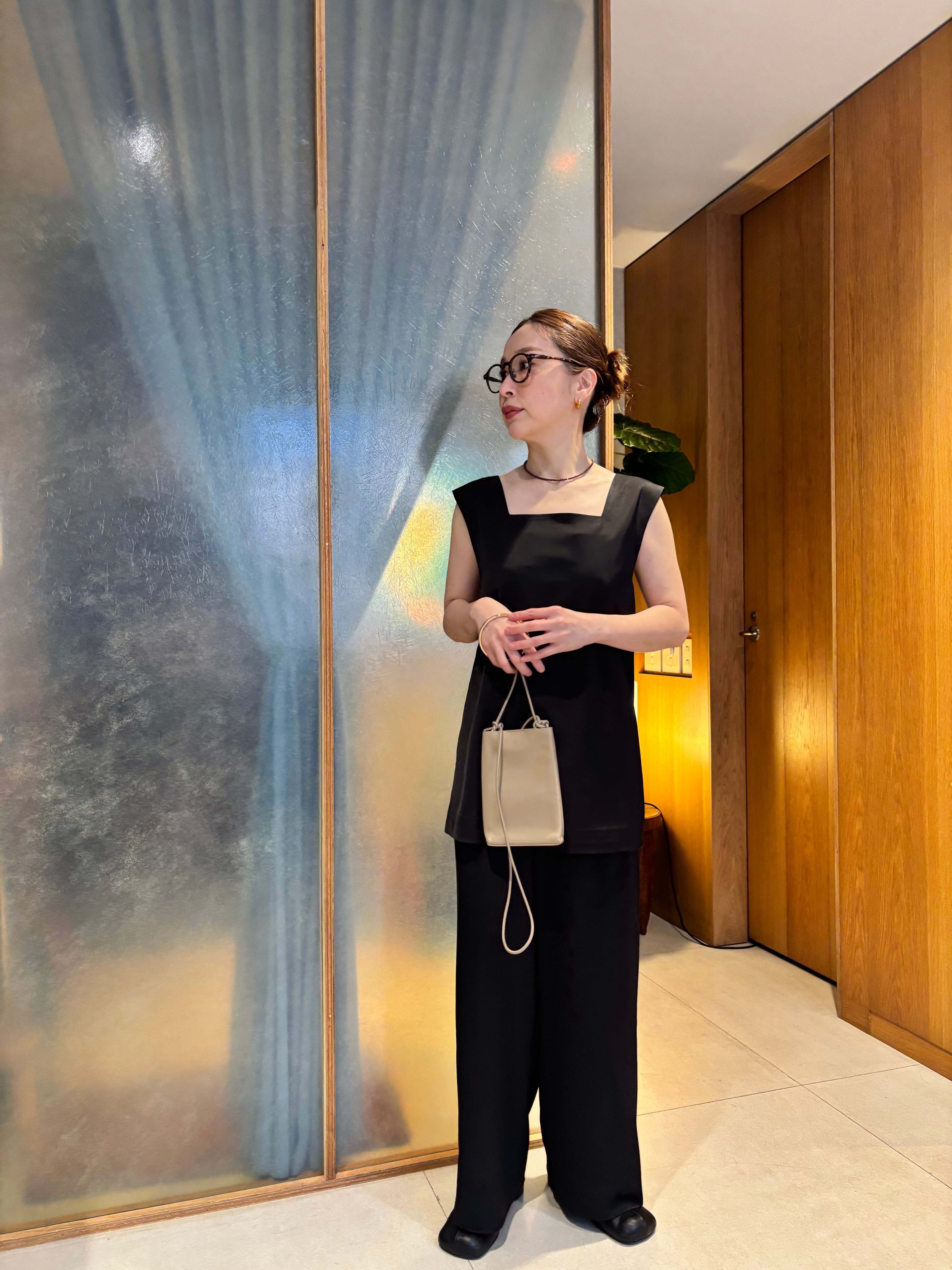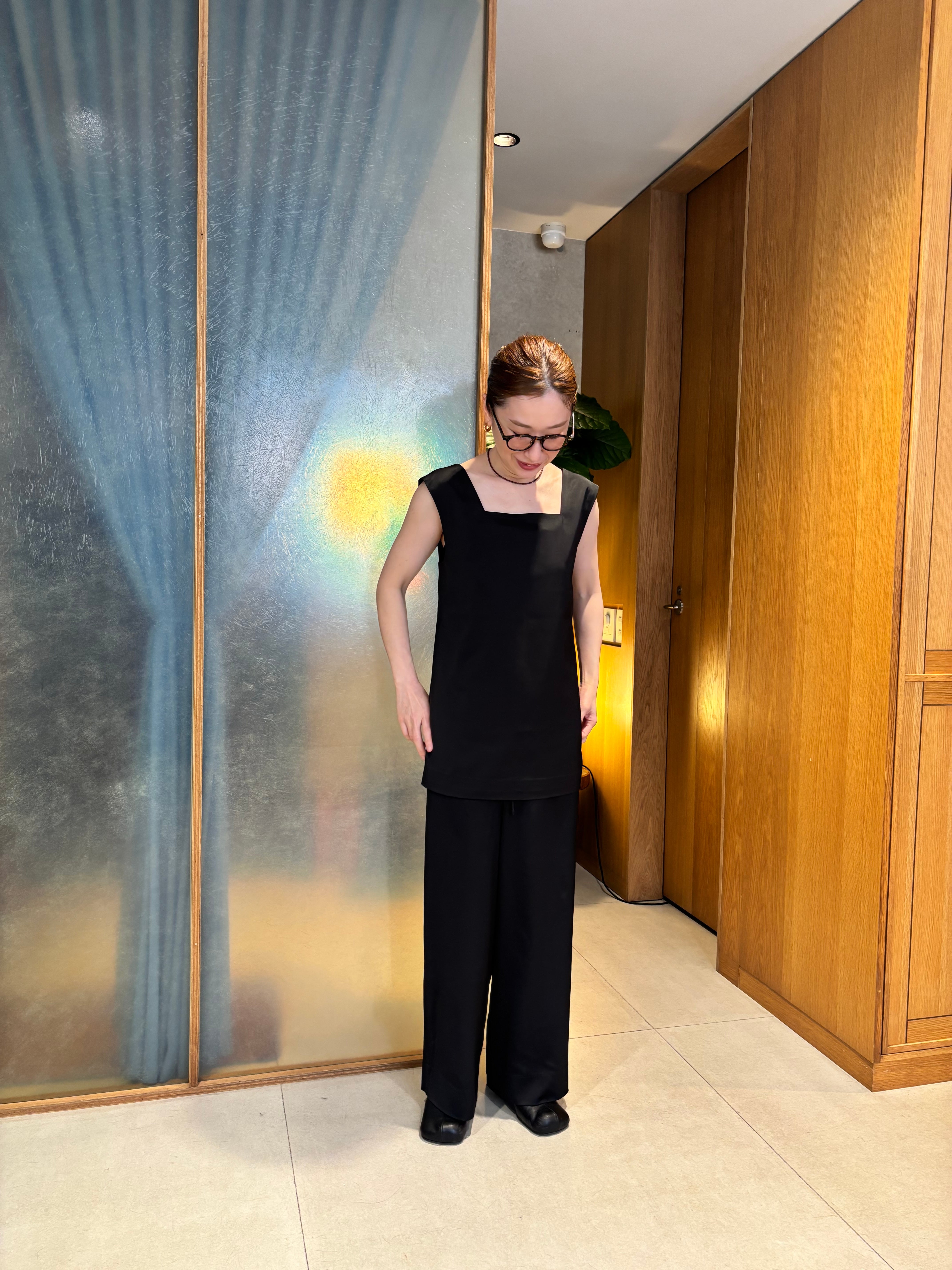 サテン素材を使用したスクエアトップス。1枚ではもちろんシャツやジャケットのインナー使いもできロングシーズンご着用頂けます。同素材のパンツを合わせるとセットアップに。オケージョンにもぴったりなアイテムです。身幅を調整出来る紐が後部分に付いているので気分や体系に合わせて着方を変えれるのも◎
