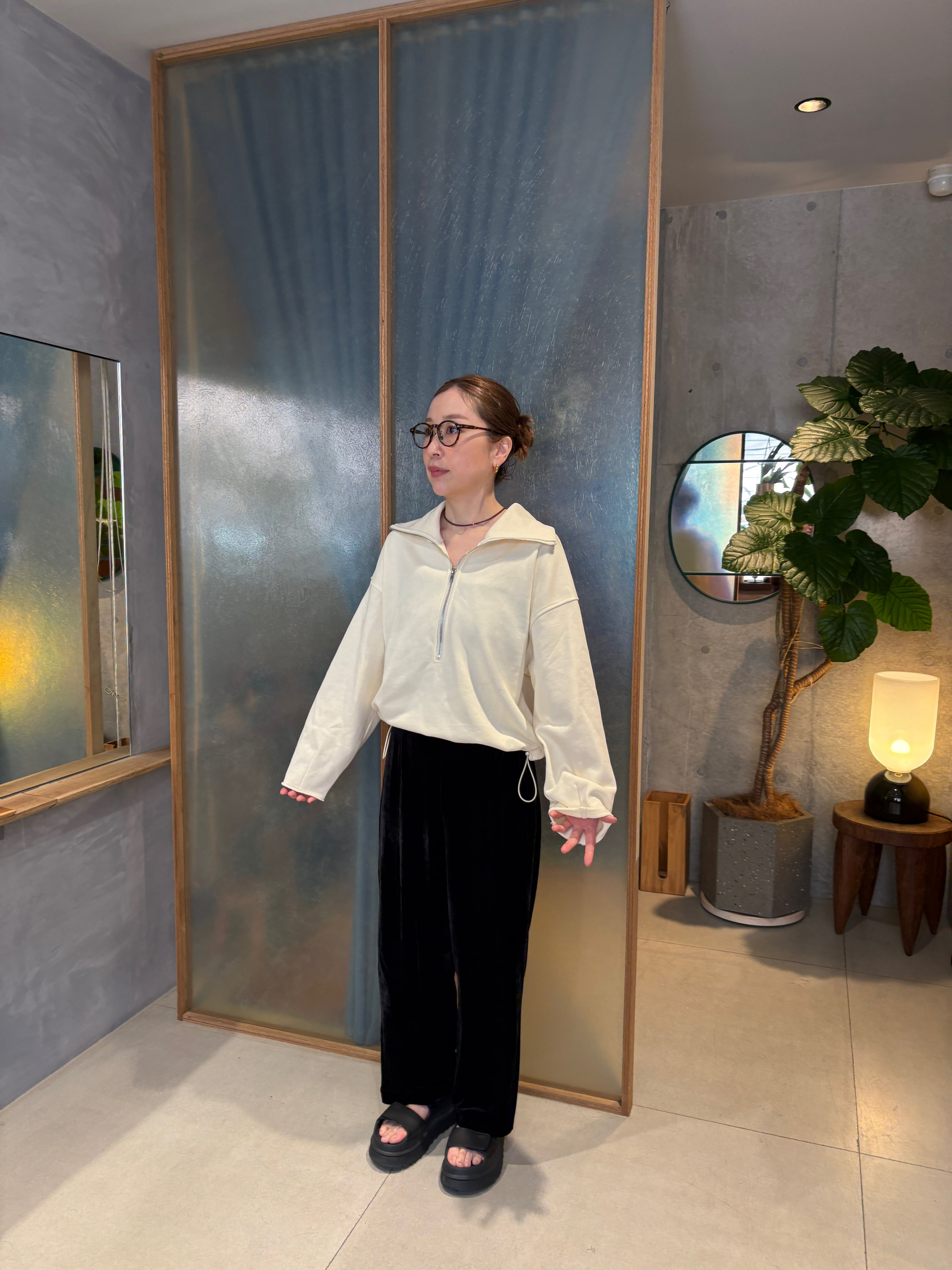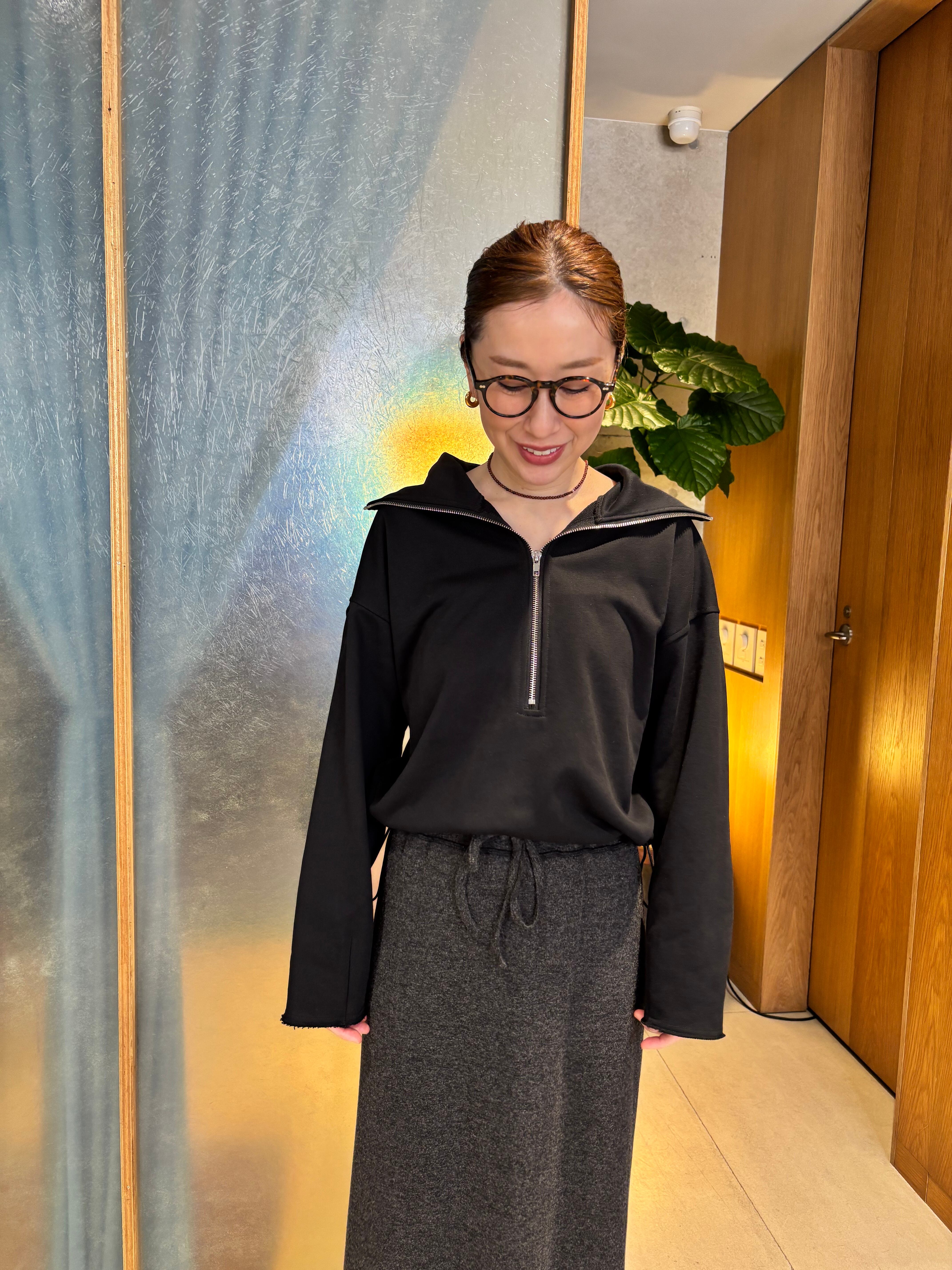 シルエットに拘ったジップスウェット。メンズライクになりがちなジップスウェットを女性らしく仕上げました。