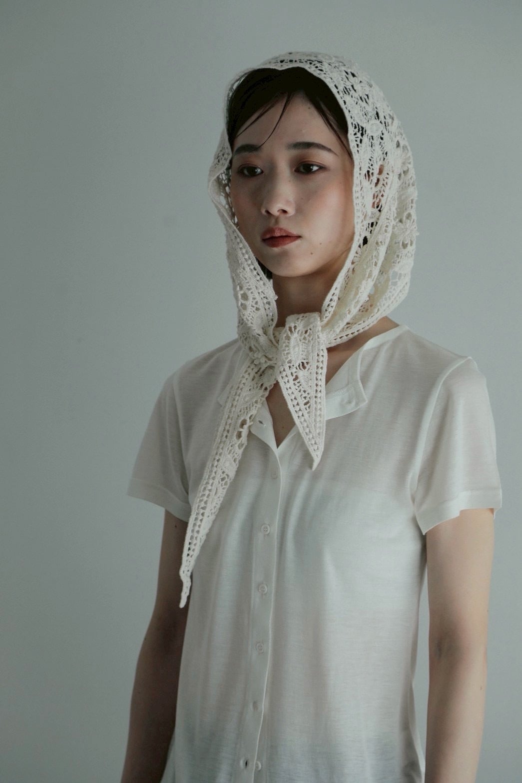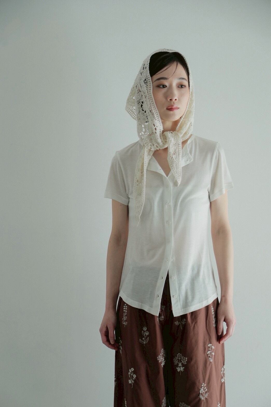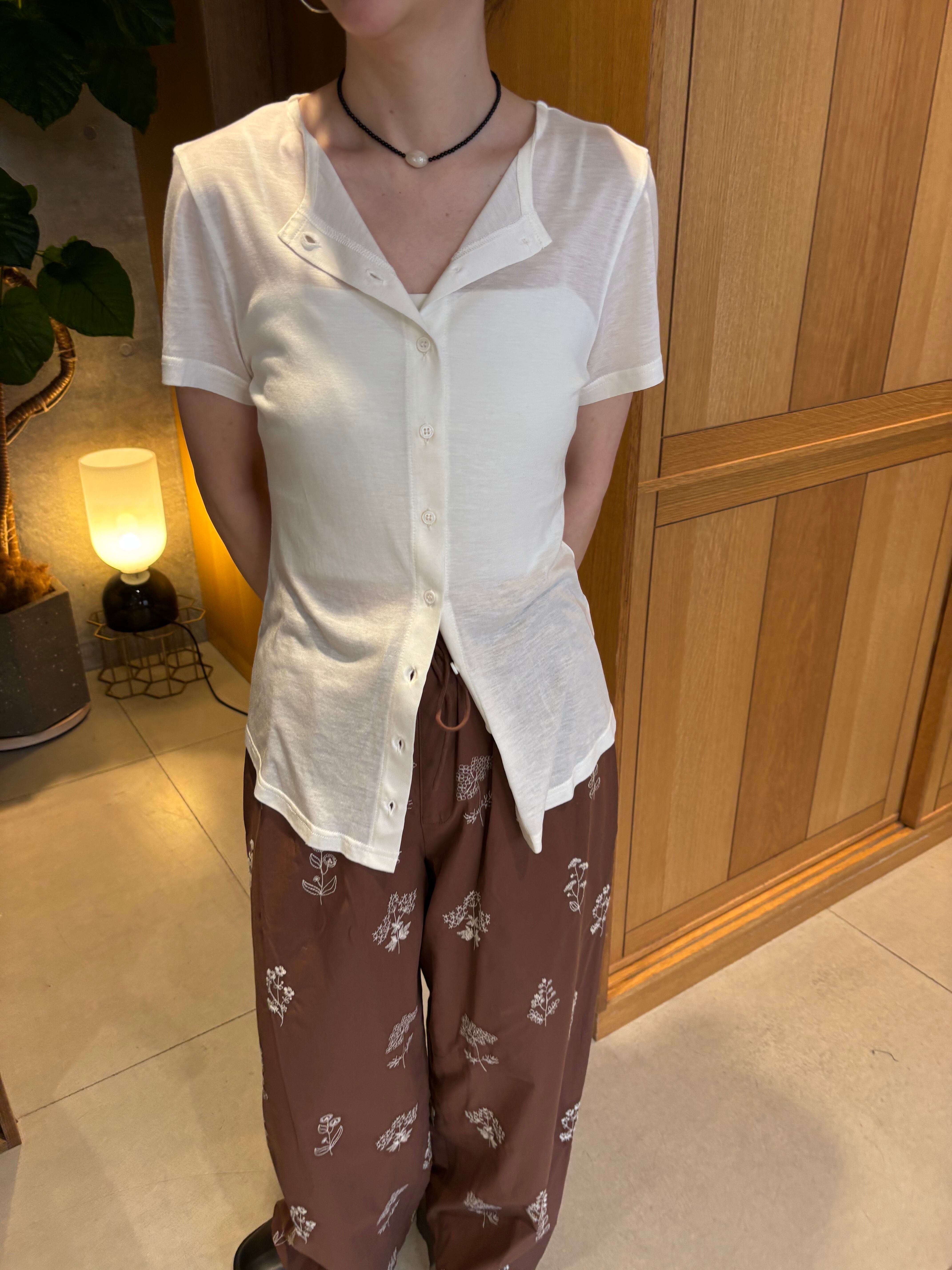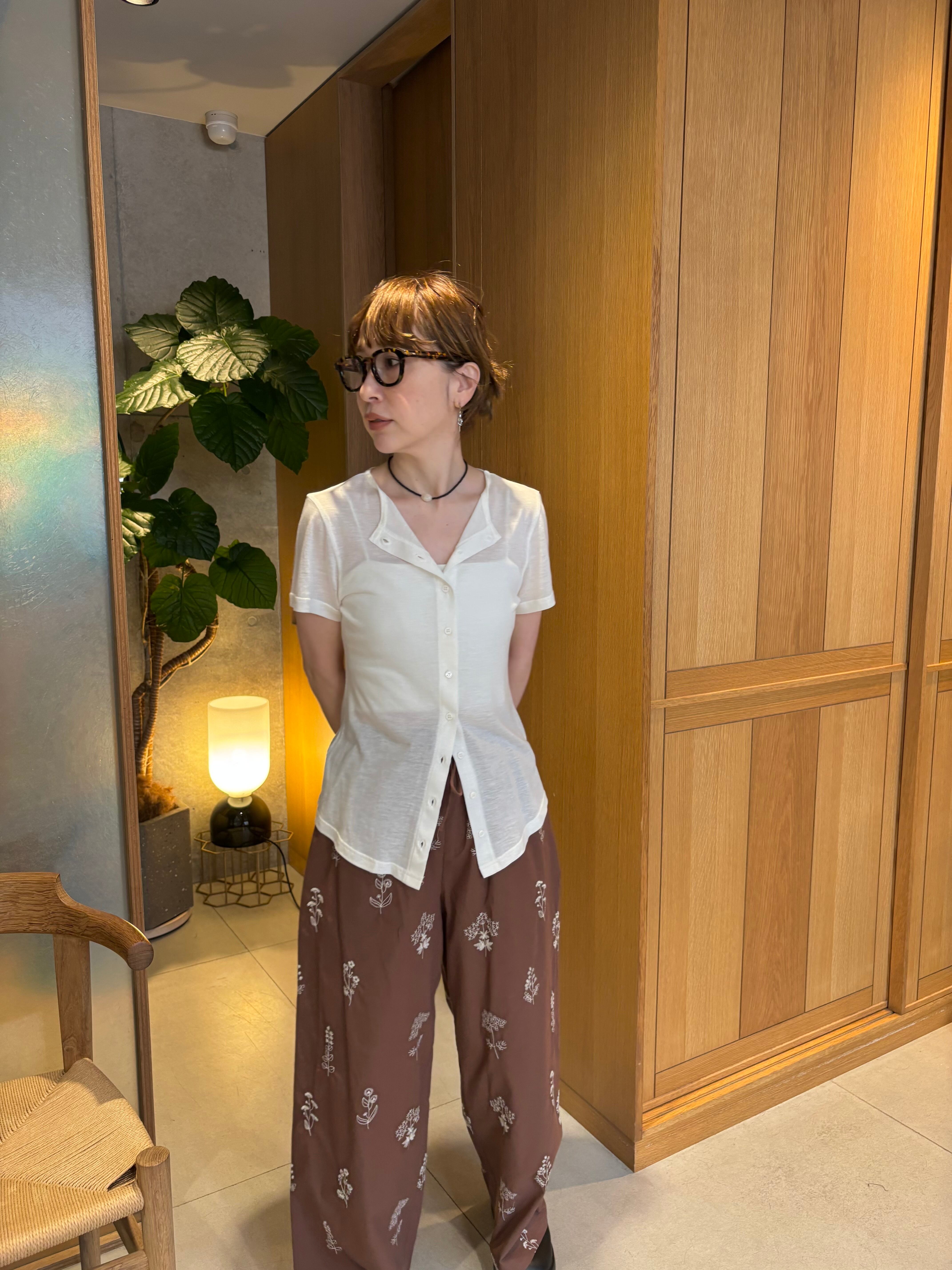 胸元のボタンは留めても外してもおしゃれに着こなせます。