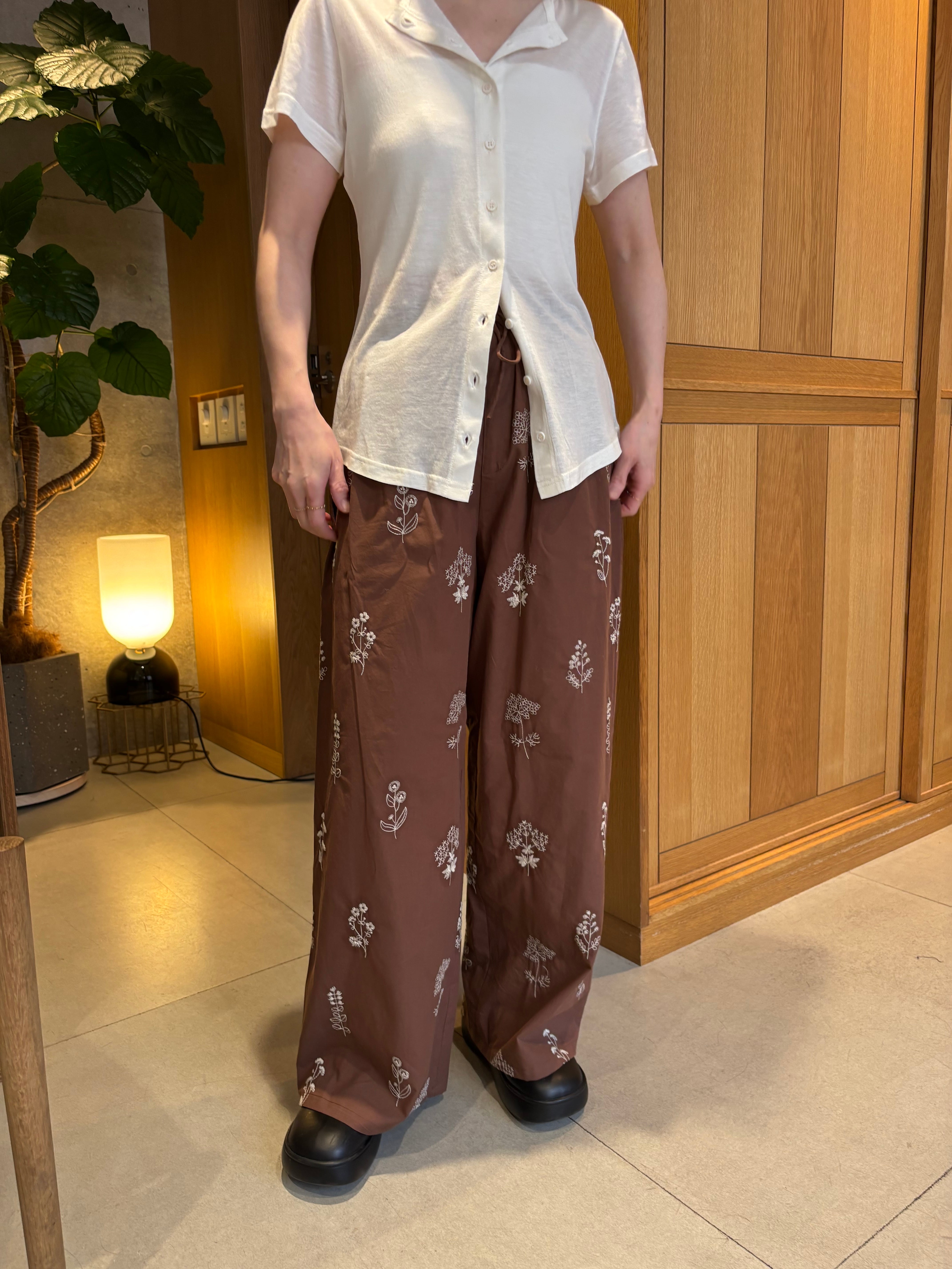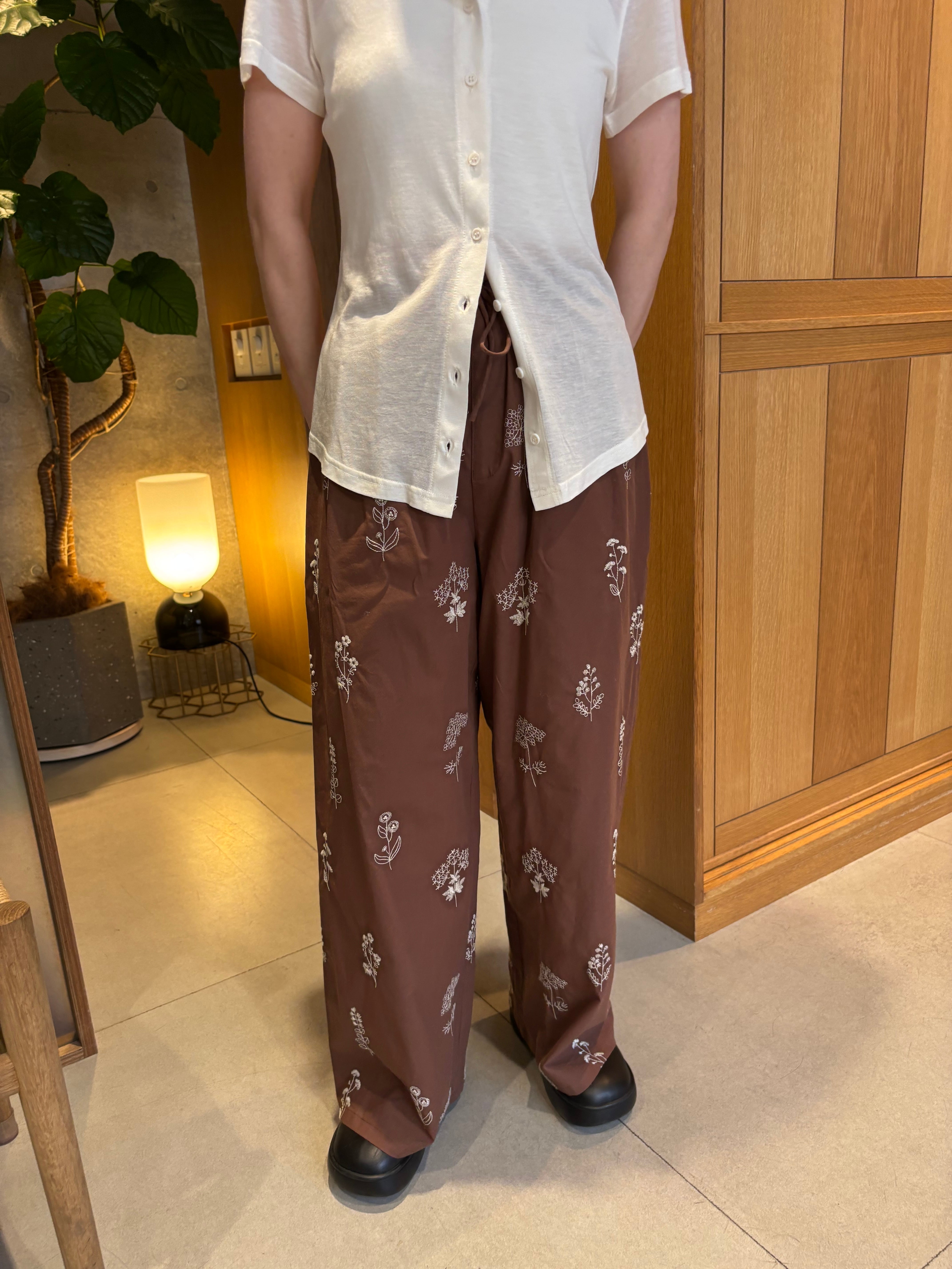刺繍がヴィンテージライクなフラワーパンツ。シンプルなスタイルにプラスするだけで、コーディネートの鮮度をアップしてくれるアイテムです。 ストレスフリーな穿き心地が叶うオールゴム仕様は夏にぴったり。扱いやすい素材も魅力。