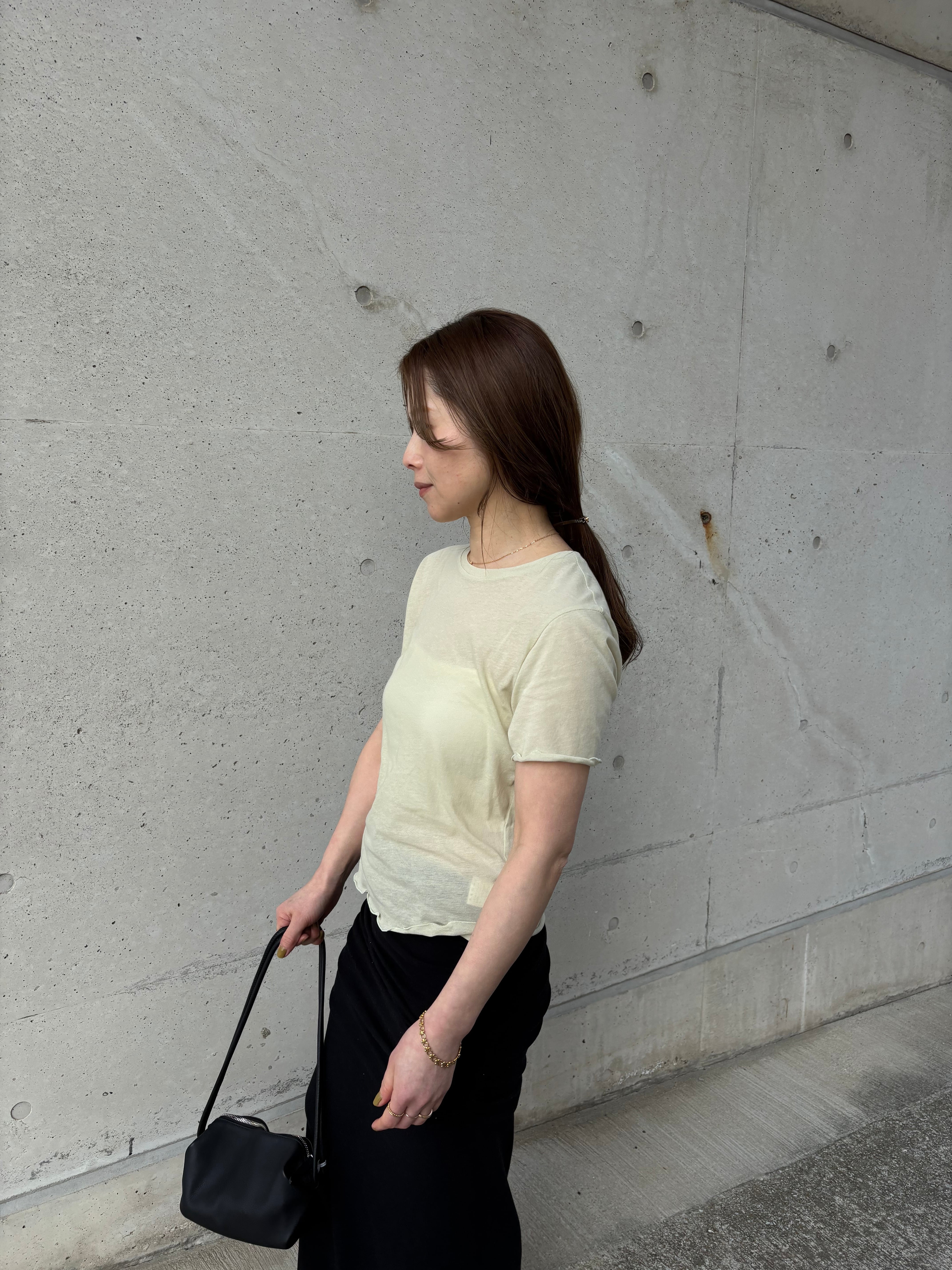 柔らかなコットン素材を使い、暑い季節でもサラッと涼しく快適に過ごせるのが魅力。どんなコーデにも合わせやすくインナー使いにもおすすめです。程よいゆとりと二の腕をカバーしてくれる着丈に仕上げています。