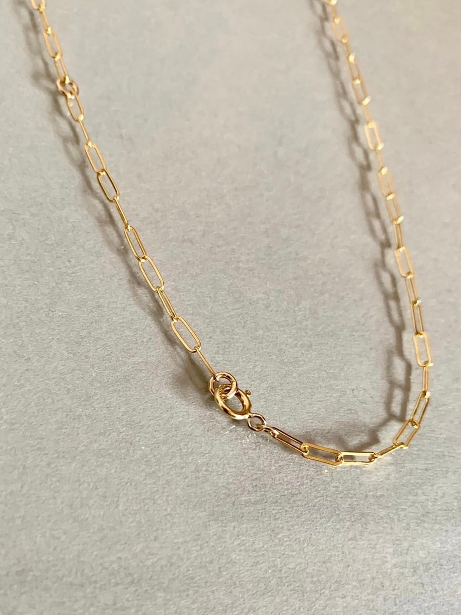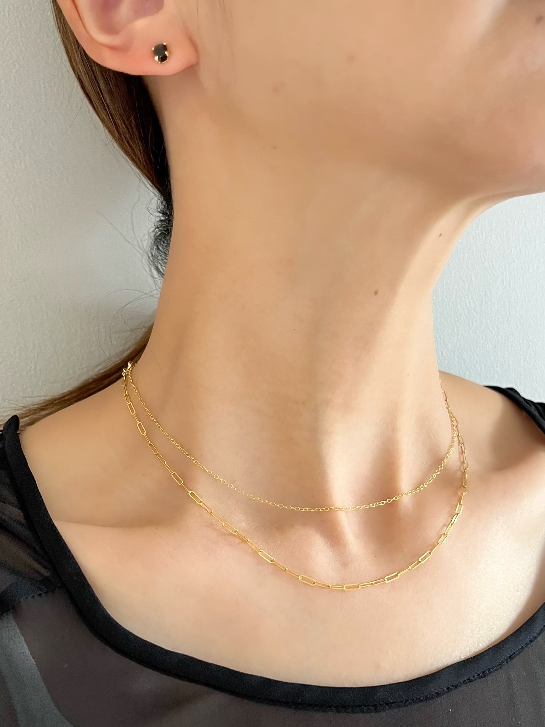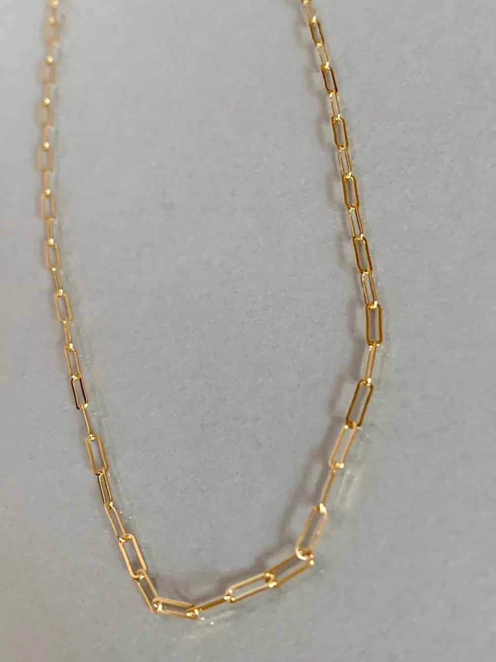 大きく縦長で平たい輪が連なった存在感のある平小豆チェーンです。シンプルながらもアクセントになるデザインが魅力です。