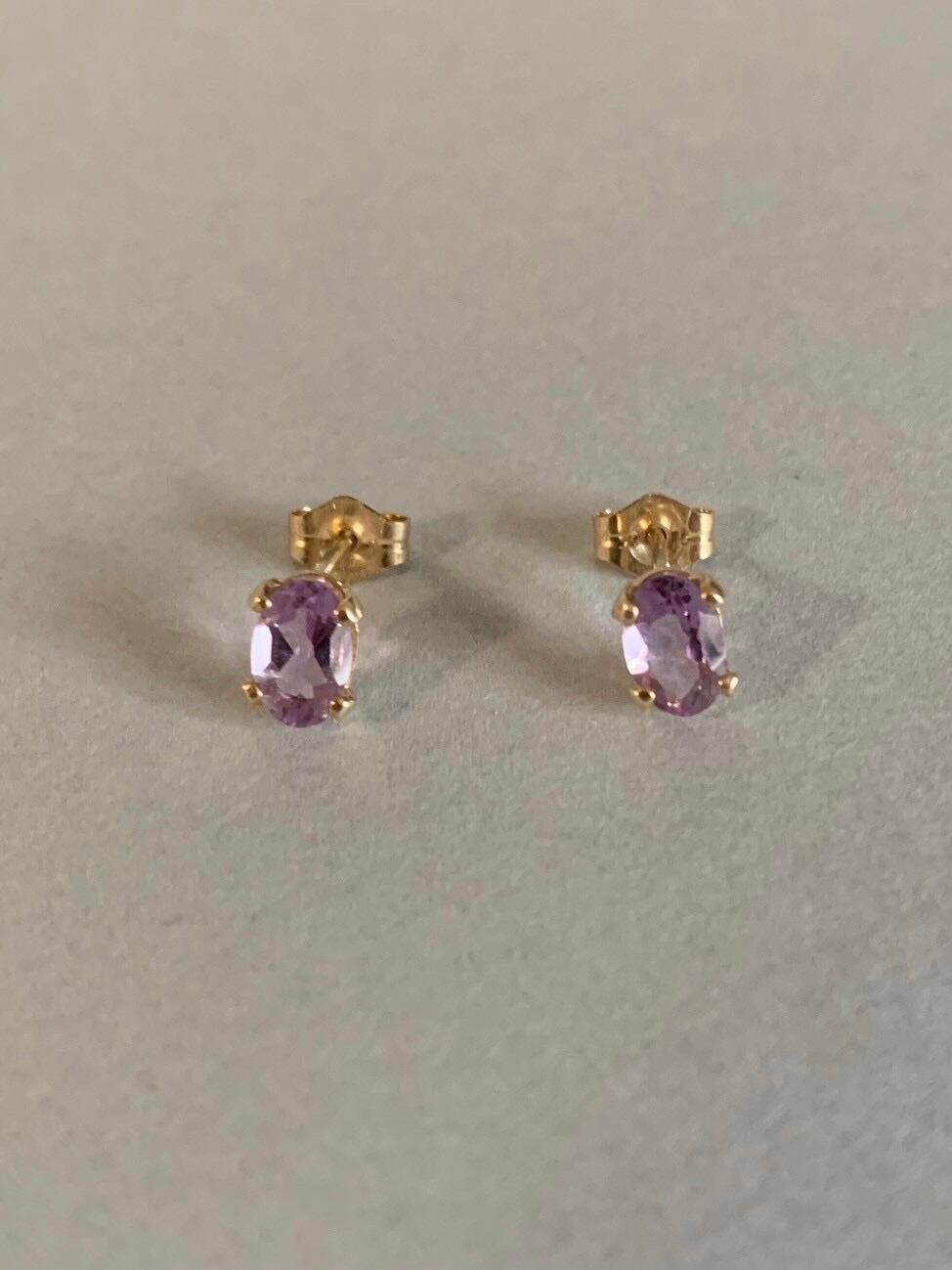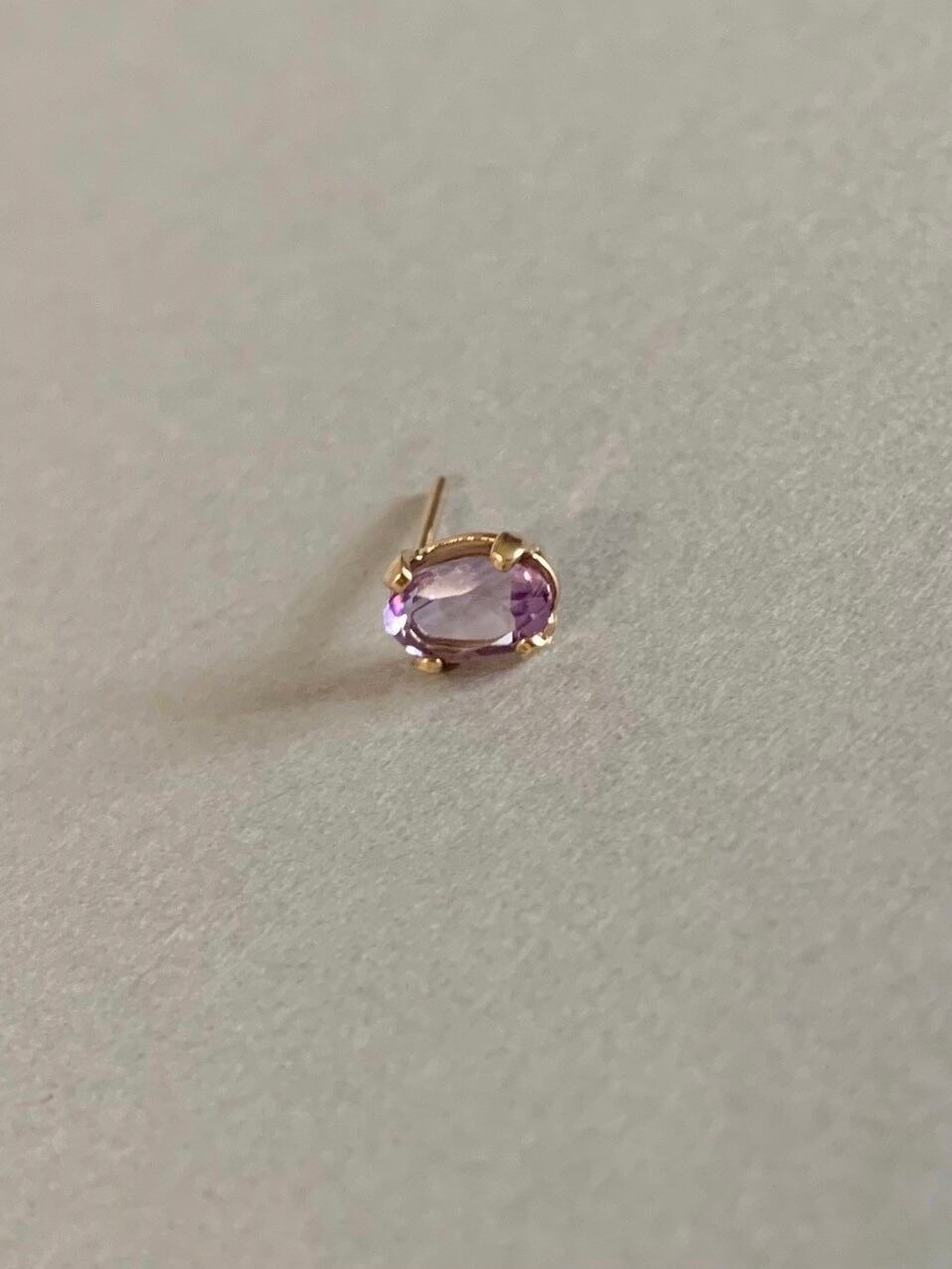 オーバルカットの透明感ある天然石をスタッドピアスに。カジュアルにもフォーマルにも合わせやすい長く身につけて頂きたいピアスです。