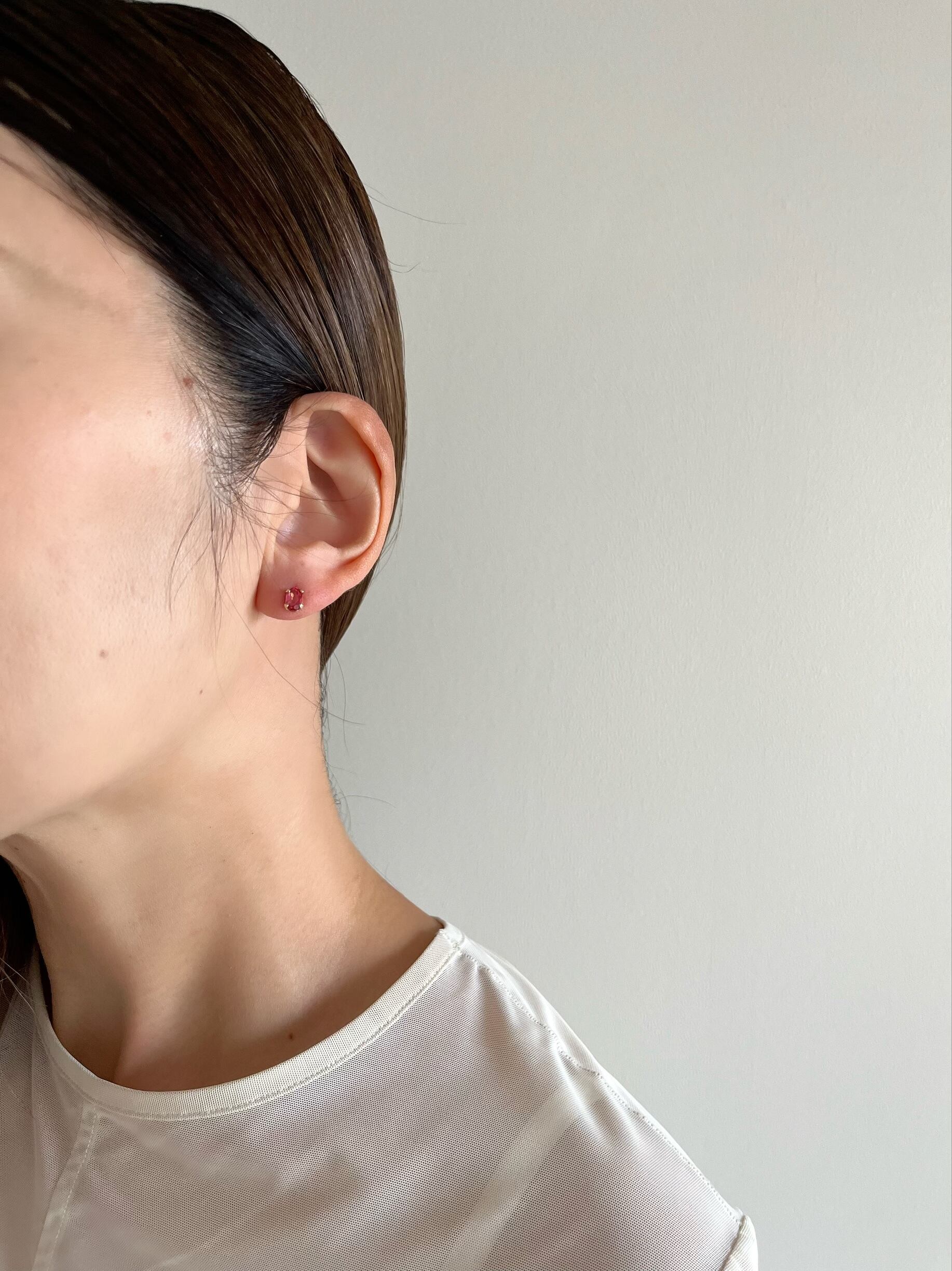オーバルカットの透明感ある天然石をスタッドピアスに。カジュアルにもフォーマルにも合わせやすい長く身につけて頂きたいピアスです。