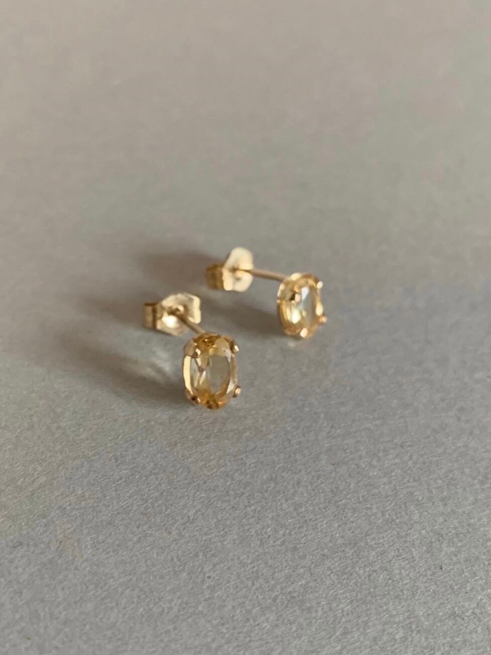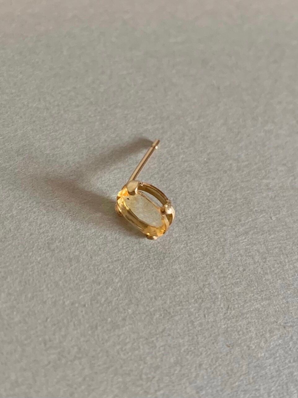 オーバルカットの透明感ある天然石をスタッドピアスに。カジュアルにもフォーマルにも合わせやすい長く身につけて頂きたいピアスです。